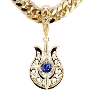 9月誕生石サファイアを使用した18金製の、馬蹄(ホースシュー)&十字架(クロス)モチーフの、メンズネックレス(ペンダント)です。 洗練されたアラベスクの透かしデザインが、存在感をプラスしてくれるアイテムです...