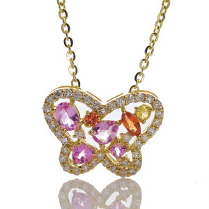 バタフライモチーフペンダント! ☆ひらひらと二羽の蝶々が舞う、デザインネックレス。情熱的な赤色のルビーのチョウと、神秘的な青色のブルーサファイアを