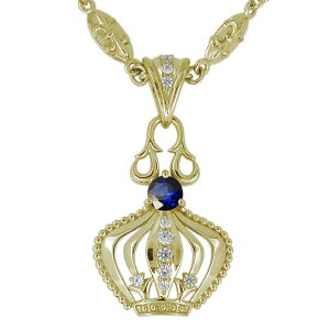 9月誕生石サファイアを使用した18金製の、王冠(クラウン)モチーフメンズネックレス(ペンダント)です。 オリジナルの百合の紋章モチーフチェーンを使用。 ※【18金カラー3色の中から】お選び頂けます。 ...