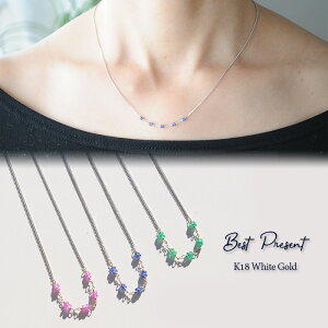 サファイア天然石を使用した大人可愛いホワイトゴールドネックレス シンプルデザイン K18 レディース サファイア アクセサリー 繊細で華奢 プレゼント 普段使い