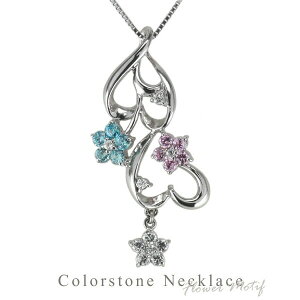K18ゴールド/SVチェーン可憐なフラワーモチーフ カラーストーンネックレス 可憐なフラワーモチーフのカラーストーンネックレスです。 ブルートパーズとピンクサファイアの優しい