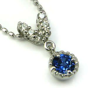 サファイア ネックレス 9月誕生石 オシャレモチーフに幸せの誕生石を入れたペンダント。 上品な大人のデザイン。 9月の誕生石(サファイア) 送料無料 保証書付。 ネックレス プラチナ 約 40cm サファイア...