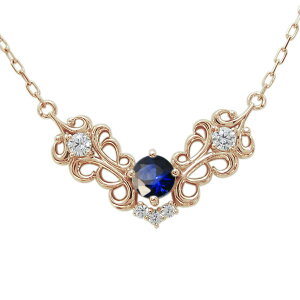 9月誕生石サファイアを一粒使用した、18金製の唐草(アラベスク)デザイン、アンティーク調ネックレスペンダントです。 ※【18金カラー3色から】お選び頂けます。 本体素材:K18ピンクゴールド/K18ホ...