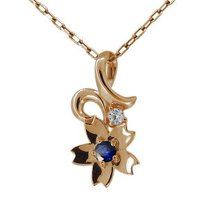 9月誕生石サファイアを使用した18金製の、桜(フラワー)モチーフレディースネックレス(ペンダント)です。 ※【18金カラー3色の中から】お選び頂けます。 本体素材:K18ピンクゴールド/K18ホワイト...