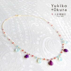 カルセドニーとパープルカラーストーンフラットドロップを中心に、 小さなサファイアやアパタイト、ガーネットを合わせて K18ステーションネックレスに仕上げました。 パープルカラーとパステル調のカルセドニーの合わせは...