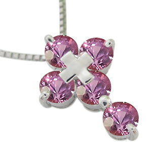 9月誕生石ピンクサファイアを使用した、18金製のクロスモチーフネックレスです。 3.0mmの天然石を贅沢に5石使用したクロスネックレスが胸元を華やかに飾ります。 本体素材:K18ホワイトゴールド(ロジ...