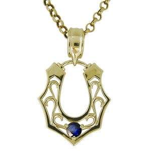9月誕生石サファイアを使用した18金製の、馬蹄(ホースシュー)モチーフメンズネックレス(ペンダント)です。 ※【18金カラー2色の中から】お選び頂けます。 本体素材:K18イエローゴールド/K18ホワ...