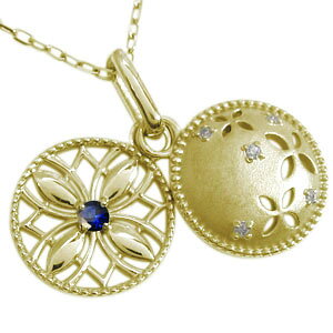 9月誕生石サファイアを使用し、花(フラワー)をモチーフにした、18金製ロケットネックレスペンダントです。 本体素材: K18イエローゴールド/K18ホワイトゴールド(ロジウムコーティング)/K18ピンク
