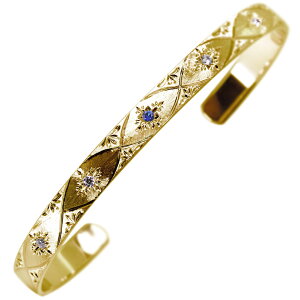 9月誕生石サファイアを使用した18金製の、レディースバングルです。 ハワイアンジュエリーとは一味違う彫金ジュエリー。 職人が一つ一つ丁寧に仕上げたオリジナルのデザインです。 ※【18金カラー3色の中から】お選び頂けます...