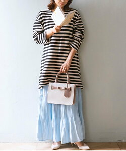 chouette(アンドシュエット)のシンプルステッチ トートバッグ。シンプルながら縦ラインのステッチとラインがポイントになったトートバッグ。きれいめにもカジュアルにも使えるおすすめのバッグです。コンパクトサイズながら13