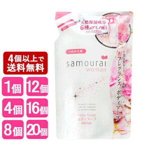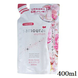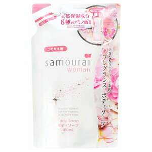 一部地域を除く】【1ケースまとめ買い20個】 ●サムライウーマン ボディソープのリニューアル。 ●アミノ酸、美肌成分配合でなめらか素肌へ。 ●サムライウーマンの香り。 ●つめかえ用400ml。 ■お電話でのお問い