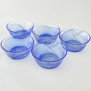涼しげな蒼い模様の入ったガラス製の小鉢5個セット。サラダや冷奴などの器として夏の食卓を華やかに彩ります。
