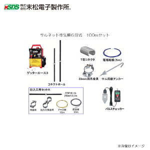 ■末松電子製作所■ サルネット電気柵6段式 100mセット 【サルネット電気柵6段式 100m セット内容】 商品名 注文No 個数 ゲッターエース3 1台 6段サルネット 652 2巻 Tコネクタ...