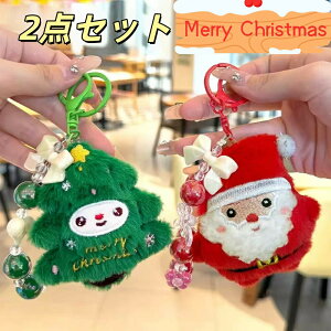 キュートでスタイリッシュなサンタクロースのクリスマスツリーのビーズキーホルダー かわいい クリスマス 車 キーホルダー 精巧 学生 スクール バッグ ペンダント ギフト サンタクロース