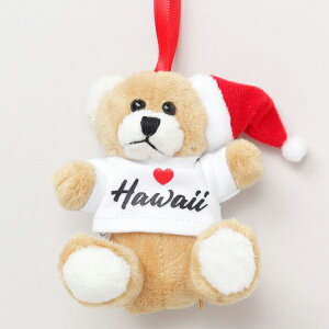 クリスマスを彩る♪ ハワイアンなクマのサンタさんのぬいぐるみオーナメント!ハワイ直輸入雑貨! ハワイから届いた、カイムキクリスマスパレードを思い出す熊のクリスマスオーナメント。 可愛いくまさんが出迎えてくれて幸せを運んで