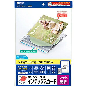 CDケースのインデックスカードが自作できる!両面印刷可能な厚手タイプ。JP-INDN サンワサプライ <仕様>■用紙サイズ:A4(210×297mm)■カードサイズ・フタ用/120×120mm・ボトム用/150×117mm...
