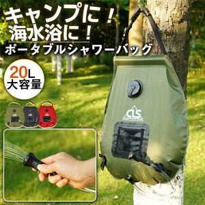 取っ手部分を吊り下げてどこでも電源不要で使用可能☆大容量20Lサイズのポータブルシャワーです。使用しない時には専用ポーチに入れてコンパクトに収納可能◎キャンプやバーベキューなどのアウトドアシーンの他、防災用としてもあると