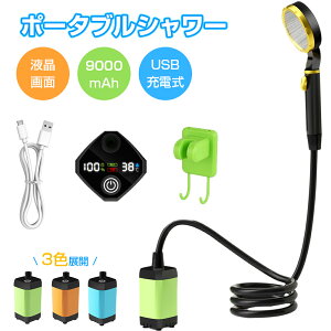 ポータブルシャワー 充電式 USB 電動シャワー シャワー アウトドア コードレス 簡易シャワー 携帯用 フック 吸盤 タンク アウトドアシャワー 車 サーフィン ボディボード 釣り 川遊び 海水浴 川...