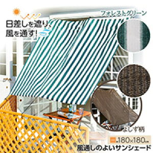 【商品仕様】商品サイズ/(約)180x180cm、材質・成分/本体:ポリエチレン、紐:ポリプロピレン、カラー/フォレストグリーン 【風を通しながら、日よけ・遮熱で涼しく快適】通風性のある生地なので風を通しながら強い日差しや、気になる視線を