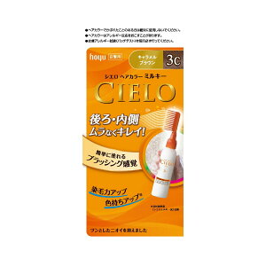 シエロ ヘアカラーEX ミルキー3C (キャラメルブラウン) 片手で手早くぬれるコーム一体型乳液タイプの白髪染めです。3つの天然ツヤ成分(毛髪保護成分)と2つのケア成分(うるおい成分、毛髪保護成分)配合...