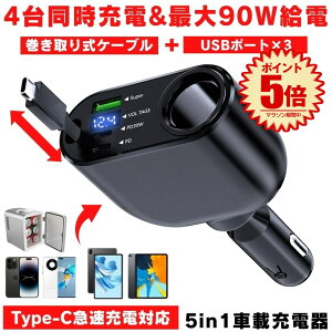 シガーソケット 3連 usb 変換 増設 電子タバコ 急速充電 カーチャージャー type-c 急速 充電 後部座席 ケーブル 巻き取り 3in1 シガーソケット 携帯 スマホ 車載 3口 12V-24V対応