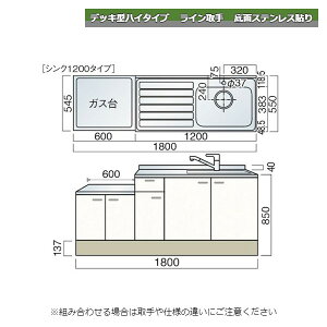 【規格/カラー/型番】 シンク右/PE/DLFHG-Y-1800(1200+600)ZRPE、シンク右/TL/DLFHG-Y-1800(1200+600)ZRTL、シンク左/PE/DLFHG-Y-1800(1200+600)ZLPE、...