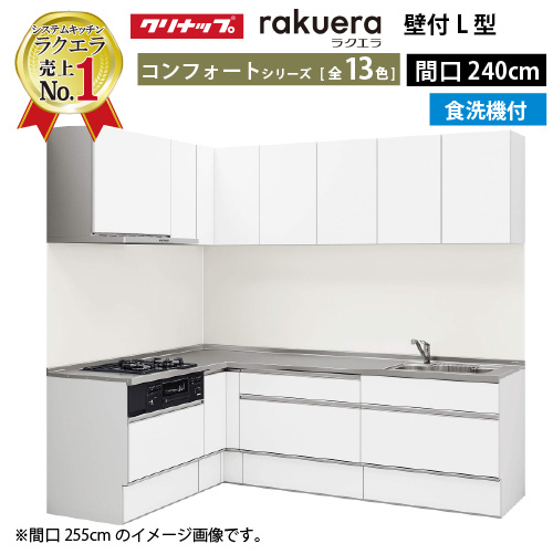 クリナップ システムキッチン ラクエラ W2400 間口240cm 開き扉 食洗機付 コンフォート L型コンロ側165cm TUシンク 奥行65cm メーカー直送 納期約2週間