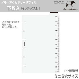 KNOX ノックス 下敷き ミニ6穴サイズ システム手帳 リフィル (レフィル・レフィール) 品番 523-702 サイズ 縦127×横80mm (ポケットサイズ ミニ6穴サイズ) 仕様 PP樹脂製 12cm定規付