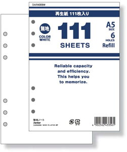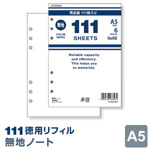 使いやすいリフィルが111枚入ってこのお値段!とってもお得なリフィルセットです。 A5サイズの無地ノートです。 111枚入 無地ノート 再生紙を使用しています W148 x H210mm (Refill_SA5)