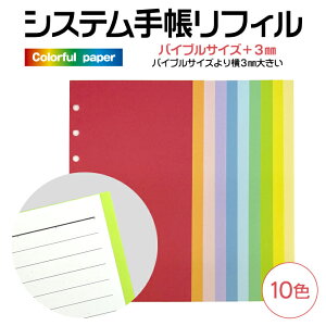 この商品は3個までメール便OKです。 (4個以上のご注文は宅配便をご選択ください) システム手帳 リフィル バイブルサイズ+3mm 商品名 システム手帳 リフィル バイブル