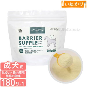 SUPPLE アダルト・シニア 180g×1袋です。粉ミルクタイプの商品です。免疫力の落ちてくるシニア期の犬の健康をサポートする名称バリアサプリ BARRIER SUPPLE アダルト・シニア 180g原...