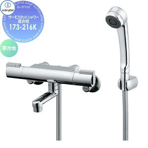 カクダイ[KAKUDAI]サーモスタットシャワー混合栓 173-076K 寒冷地仕様。カートリッジ:104-003。切替部:104-004。シャワーヘッドは、シャワー、スポットシャワーの2種類の切替えができます。シャワーホース接続部ネ...
