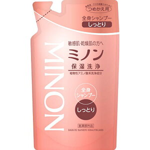 「ミノン 全身シャンプー しっとりタイプ詰替用 380ml 《医薬部外品》」は、敏感な肌を守って、しっとり洗う薬用全身シャンプーです。健康な素肌を同じ弱酸性。素肌に余分な負担をかけません。うるおいを守りながら汚れを落とすので...
