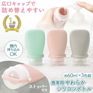 シャンプーやコンディショナー、ボディーソープなどを詰め替え、持ち運べるシリコンボトル♪色で使い分けができる3色セット。やわらかいシリコン素材なので手にフィットし、液体を最後まで出しやすい。フタ開き防止のストッパーが付い