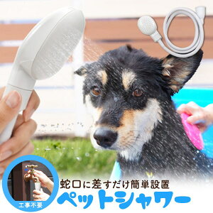 蛇口に差すだけ簡単設置!ペットシャワー 1m30cm工事不要で蛇口に差し込むだけでシャワーを使えるようになります。直径16mmまでの蛇口に使用可能です。ウェットシートでは落ちにくい、わんちゃんの散歩帰りの土汚れもシャワーを使って、