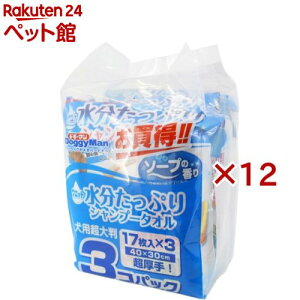 ケアグッズ>ペット用タオル・シャンプータオル>全部見る>ドギーマン ウエットシャンプータオル 犬用 超大判 (3個入×12セット(1個17枚))【ドギーマン ウエットシャンプータオル 犬用