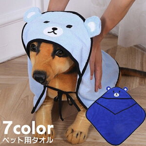 フード付きでかわいいペット用のタオルです。 ワンちゃんネコちゃんのシャンプー後に重宝するアイテム◎ 紐付きなので脱げにくいデザインです。 7種類のカラーからお選びください。 【カラーについて】 生産ロットにより柄の出方や色の