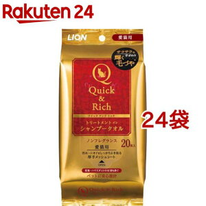 ット用)>クイック&リッチ トリートメントイン シャンプータオル 愛猫用 (20枚入*24袋セット)【クイック&リッチ トリートメントイン シャンプータオル 愛
