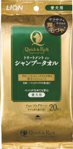 ます。予めご了承ください。 名 称 Quick&Rich クイック&リッチ トリートメントインシャンプータオル 愛猫用 内容量 20枚 特 徴 ◆極上の仕上がり感を追求したシ