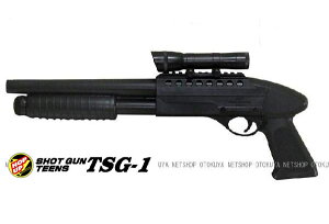 いて掲載しています 10才以上用のコッキングショットガン登場! ショットガンティーンズTSG-1 コッキングガン10才以上用 スコープを装着したショットガンの登場装弾数15発で、最大飛距離30m簡