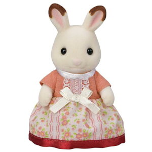 耳の先のチョコレート色が特徴のショコラウサギのお母さんの テリーです。 お人形の頭、手足を動かして、ポーズをとらせることができます。 花柄のワンピースは、着せ替えが可能です。 (C) EPOCH