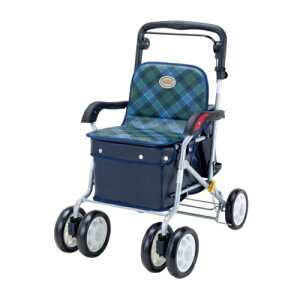 保冷バッグ搭載。便利な買い物カゴ置き付。両手でブレーキバーを握れる為とても安心(駐車ブレーキ付)。材質:フレーム/アルミ、キャスター/EVA、シート/ポリエステル。色:ストライプネイビー。サイズ:W45×D54×H82〜92cm。折り...