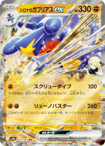 ★収録:ポケモンカードゲーム スカーレット&バイオレット 強化拡張パック「熱風のアリーナ」 ■カード名:シロナのガブリアスex/Cynthia's Garchompex ■HP:330/タイプ:闘 ■分類:2進化(シロナのガバイト) ...