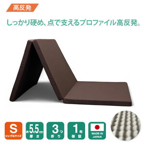 収納しやすい三つ折りタイプ! 腰をやさしく支える高反発マットレスです。 厚みたっぷり10cmで、1枚でも底付き感のない寝心地。 高反発マットレスは下からの跳ね返りの力により、沈み込みが少ないのが特徴です...