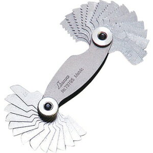 【商品詳細】ネジ山に当てるだけでピッチが分かります。一般のネジのピッチを測定するゲージリーフに1インチ当たりの山数を表示しています。山の角度:55度(ウィットネジ用)注意:サビ防止の為、使用後は汚れをキレイに拭き取り、油を