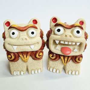 【カラー】1枚目が茶、2枚目の左が黄、右が赤です。3色あります。お好きな色をお選びください。他にもたくさんのシーサーがあります!!【サイズ】1体のサイズが高さ6cm.横3.5cm.奥行き5cmです。【国際通りのおみやげやさん】の商品カテゴ