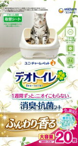 ユニ・チャームペット デオトイレ ふんわり香る消臭・抗菌シート ボタニカルの香り(20枚)。●1週間分の尿をしっかり吸収し、抗菌剤が。