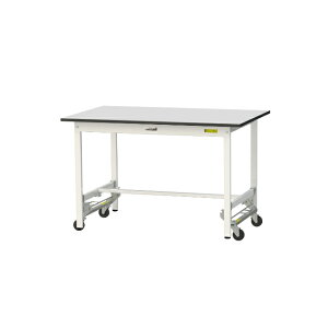 ワンタッチで固定式と移動式の切り替えが簡単にできます。 ●固定時はキャスターが地面に設置しない構造の為、ぐらつきなく作業ができます。 ●高さ900mmで立ち作業にお勧めです。 ●天板表面材の塩ビシートは床材にも使用される