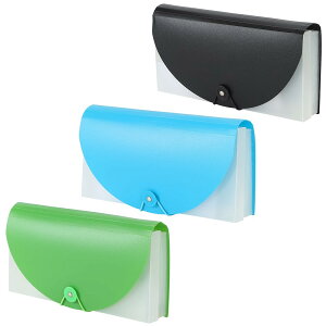 【支出管理をサポート】レシートや領収書をまとめて保管出来るドキュメントファイルセット。手前には通帳・印鑑などが入るマチ付きの収納スペースとポケットがあり、分類ごとに分けられる見出しシール付き