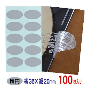 商品説明素材 アルミ蒸着ポリエステルフィルム(表面:銀消し、糊面:開封済) サイズ 縦 20mm 横 35mm形状楕円包装単位 10枚/1シート×10シート(100枚)